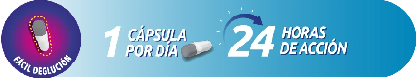 - Presentación en cápsulas gastrorresistentes de fácil deglución.